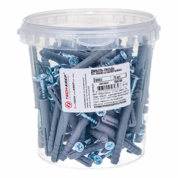 Дюбель-гвоздь Tech-Krep пот манжета полипропилен черный 8х60 75шт ведро