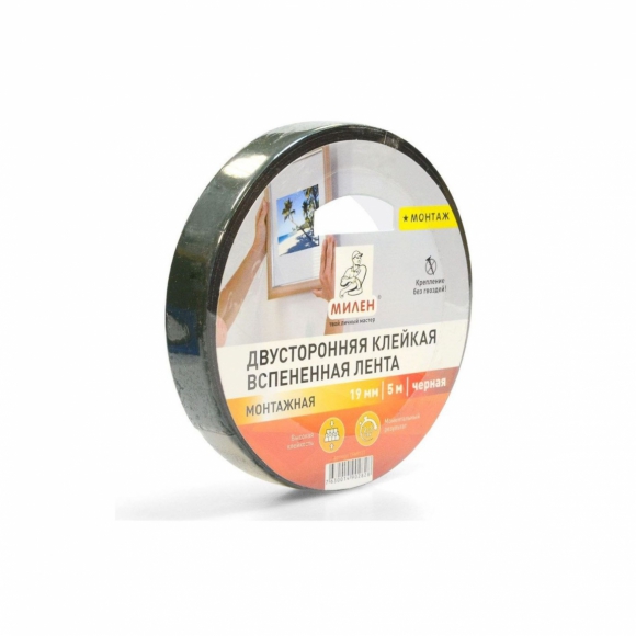 Лента AVIORA двусторонняя вспен черная 12ммx10м