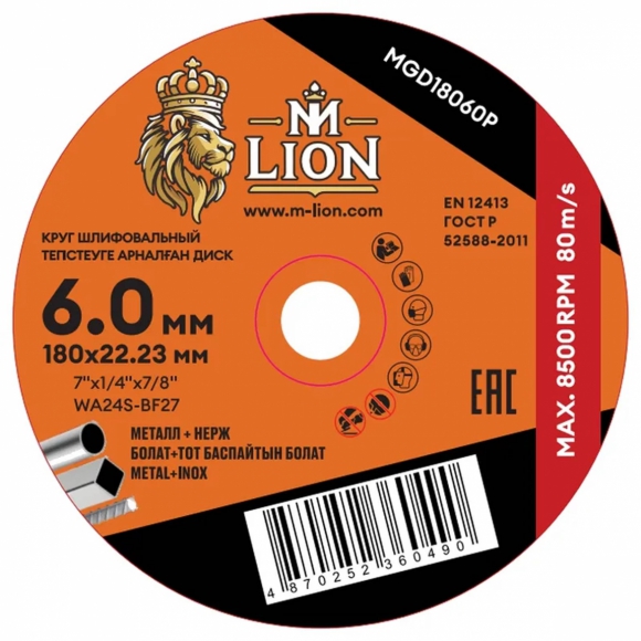 Круг шлифовальный M-LION по металлу T27-180x6.0x22.2