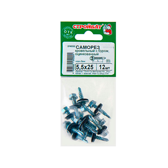 Саморезы Стройбат кровельные с буром бел цинк 5.5x19 70шт