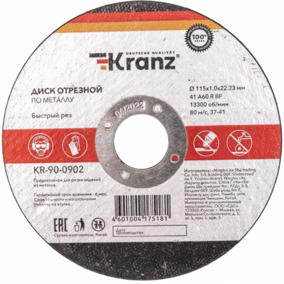 Диск отрезной Kranz по металлу 230x1.8x22.23мм