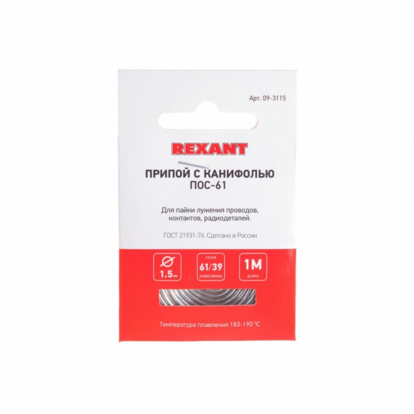Припой СИБРТЕХ с канифолью на пластмассовой катушке D 1.5мм 50г POS61