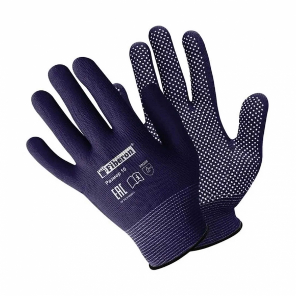 Перчатки Fiberon хлопок/полиэстер текстуриров латексн покр L серый/синий