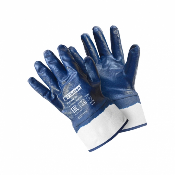 Перчатки Fiberon хлопок/полиэстер нитриловое покр XL белый/синий манжета-резинка