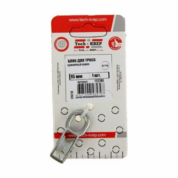 Блок д/троса Tech-Krep одинарный оцинк шкив 20мм 1шт ярлык 112741