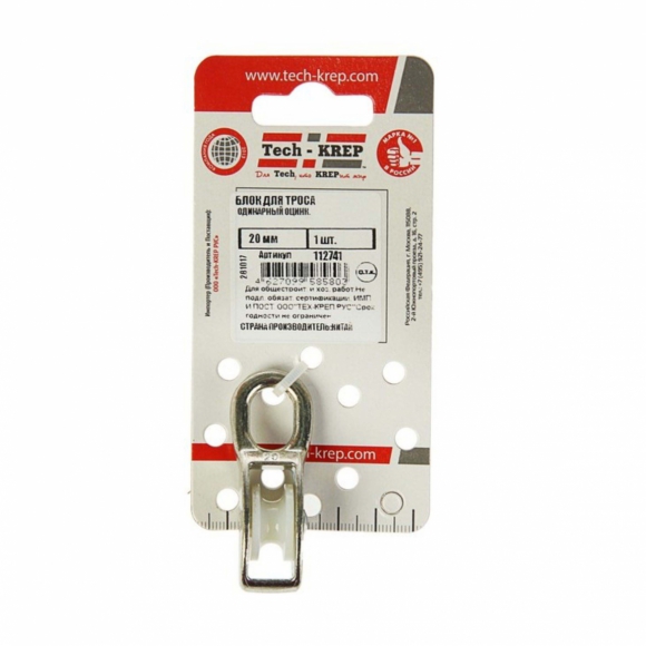 Блок д/троса Tech-Krep одинарный оцинк шкив 15мм 1шт ярлык 112740