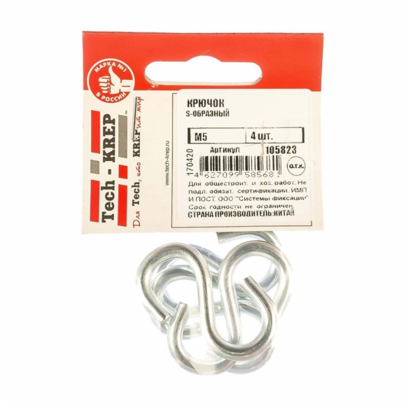 Крючок Tech-Krep S-образный М4 5шт пакет