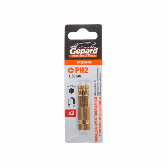 Насадка д/шуруповерта GEPARD магнит PH2 50мм 2шт GP3800-50
