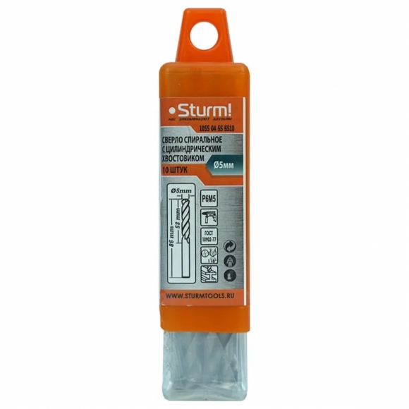 Сверло по металлу Sturm 5.0x86мм упак 10шт 1055-04-5S-SS10