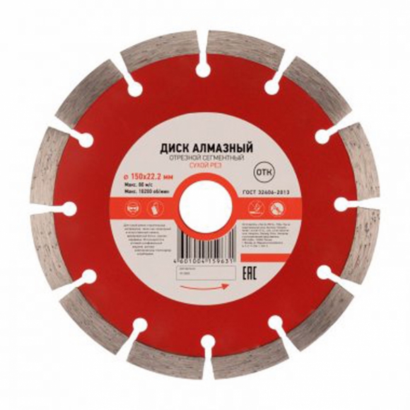 Диск СИБРТЕХ алмазный отрезной сегментный сухая резка 115х22.2мм