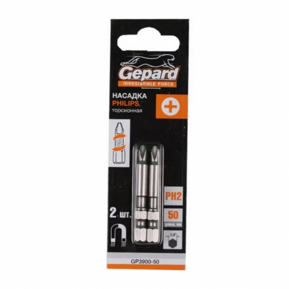 Насадка д/шуруповерта GEPARD магнит PH2 50мм 2шт GP3900-50