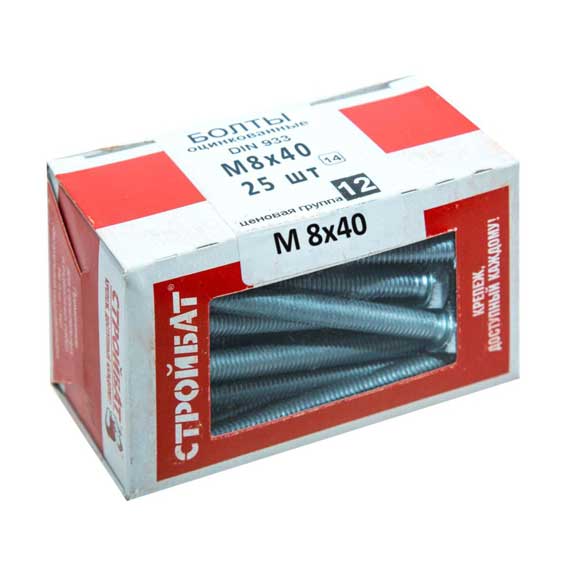 Болт СтройБат DIN 933 М бел цинк 8x40 25шт