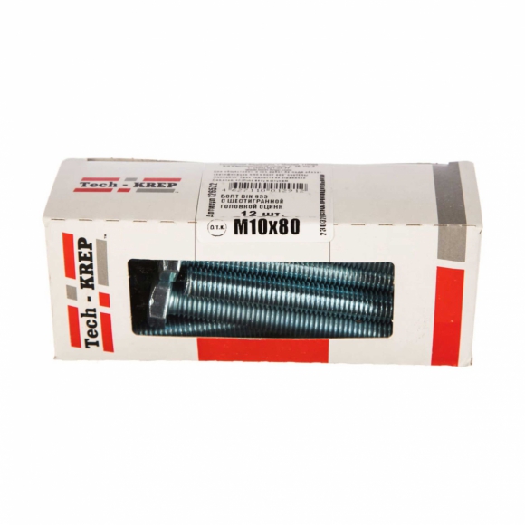 Болт Tech-Krep DIN933 с шестигранной головкой оцинк М10x80 12шт коробка 126522