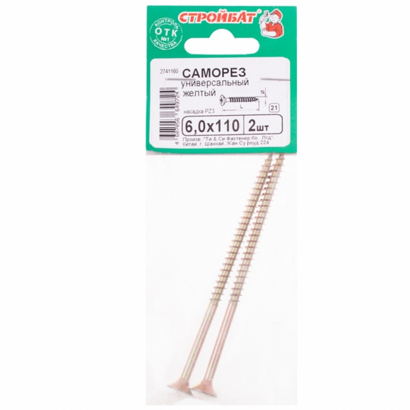 Саморезы универсальные желтый цинк 6,0x110 2 шт