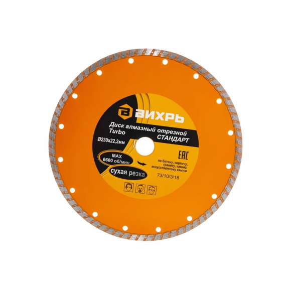 Диск алмазный Вихрь отрезной Turbo сухая резка 230x22.2мм