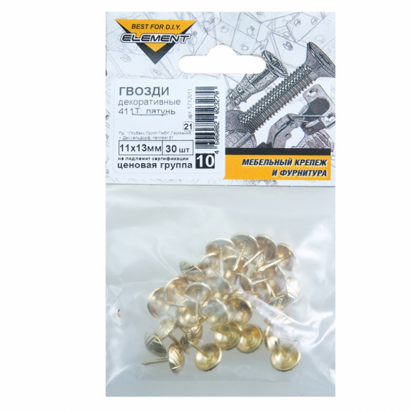 Гвозди декор Element латунь 411 T 11x13мм 30шт