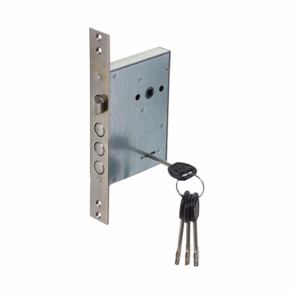 Замок Гардиан 30.11 врезной сувальдный под ручку 4 ключа длинных Предназначен для установки в металлические двери, шкафы и сейфы. Универсальный, подходит для дверей правого и левого открывания. Усилен