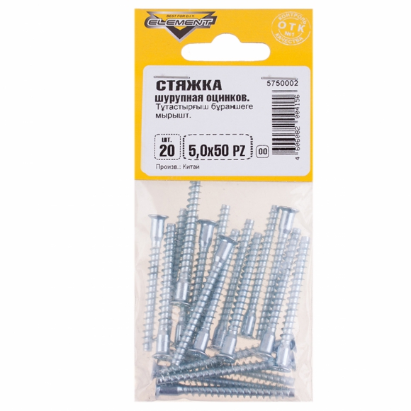 Винт мебельный Element плоск белый цинк М6x50мм 4шт