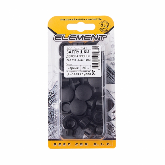 Заглушка Element на меб стяжку черный 5мм 50шт