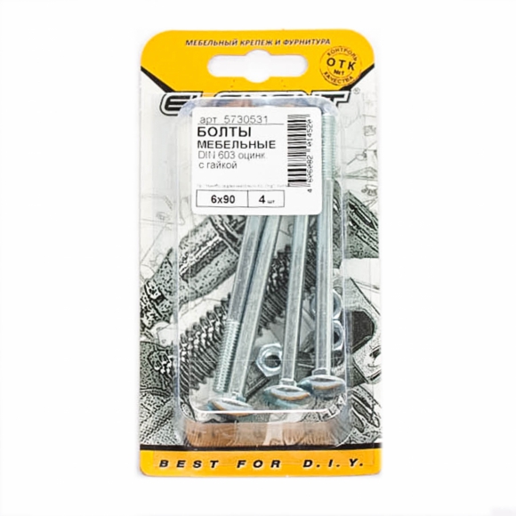 Болт мебельный Element DIN 603 белый цинк 8x60 с гайкой 4шт