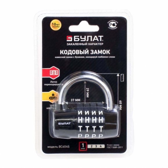 Замок навесной BLOSSOM с дужкой из нерж стали LS4540