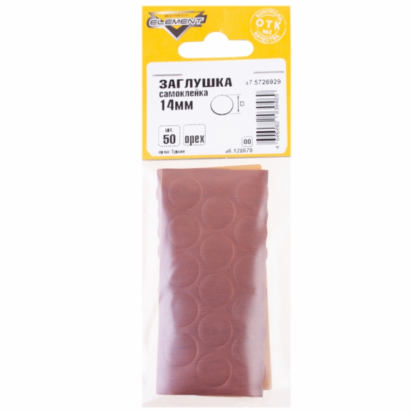 Заглушка-самоклейка Element орех 14мм 50шт