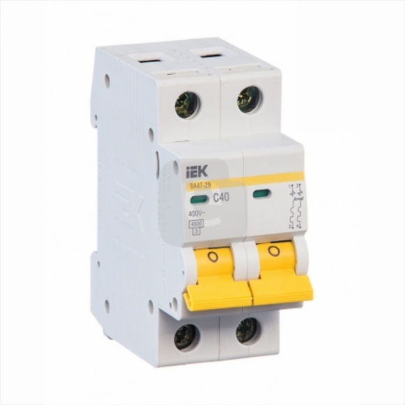 Авт выкл IEK ВА47-29 2Р 40А 4 5кА х-ка С , Количество полюсов: 2, Номинальный ток: 40 А, Номинальное рабочее напряжение: 400 В, Степень защиты - IP: IP20, Тип монтажа: на DIN-рейку, Тип подключения: В