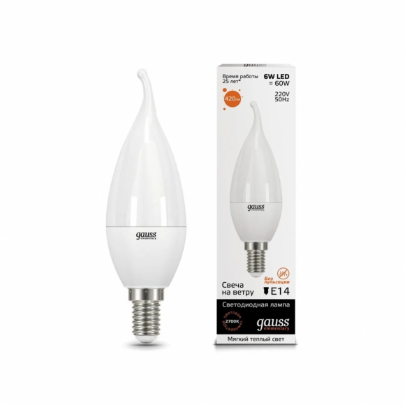 Лампа Gauss LED Elementary Candle 6W E14 2700K 1/10/50