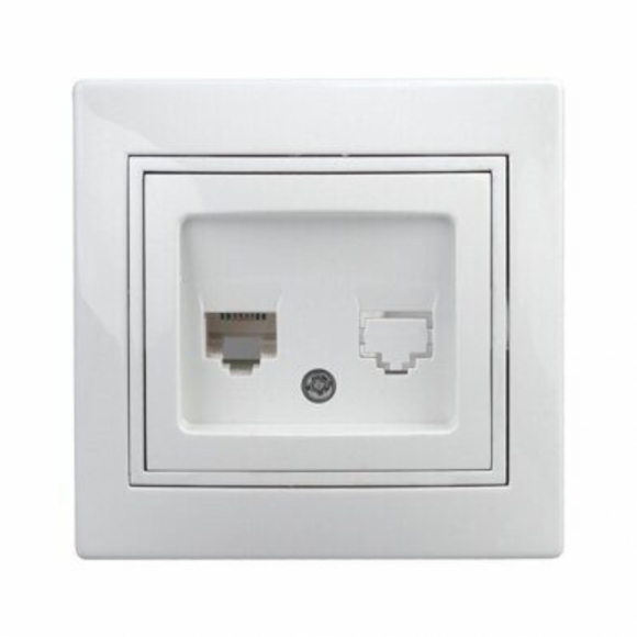 Розетка Intro СУ Plano RJ11 IP20 телефонная белый, Напряжение 220..250 В,Частота тока - 50Гц, Номинальный ток - 16А, Степень защиты - IP20, Климатическое исполнение - УХЛ4, Сечение проводников от -1.5