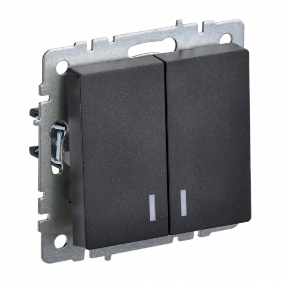 Выключатель 2 кл IEK BRITE с индикацией 10А ВС10-2-1-БрЧ черный /10