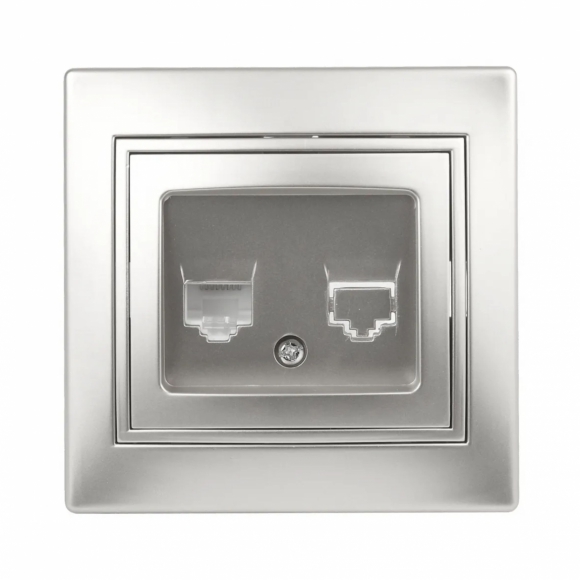 Розетка Intro Plano RJ11 телефоннная алюминий, Напряжение 220..250 В,Частота тока - 50Гц, Номинальный ток - 16А, Степень защиты - IP20, Климатическое исполнение - УХЛ4, Сечение проводников от -1,5 до
