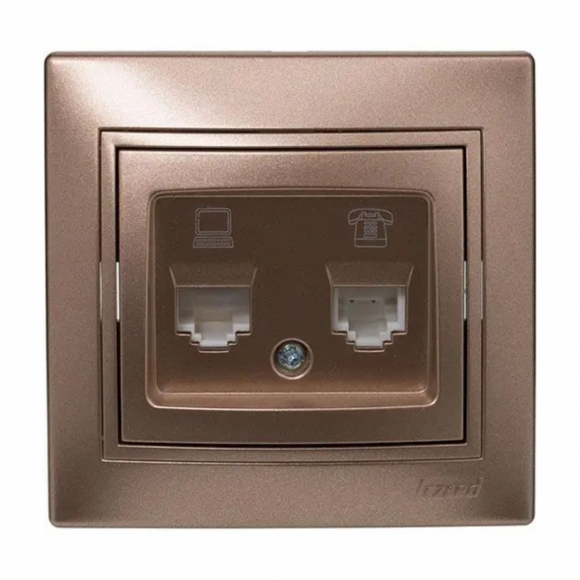 Розетка Lezard Мира компьютер + телефон жемчужно-белый перламутр со вставкой 10шт 701-3030-143