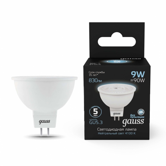 Лампа Gauss MR16 9W 4100K GU5.3 LED 1/10/100