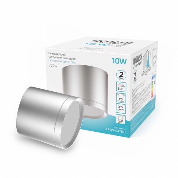 Светильник Gauss LED накл цил 10W 4100K 170-240V IP20 88х75мм хром