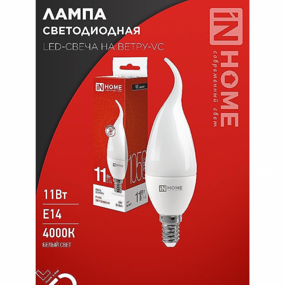 Лампа IN HOME светодиод LED-СВЕЧА НА ВЕТРУ-VC 8Вт 230В Е14 4000К /30