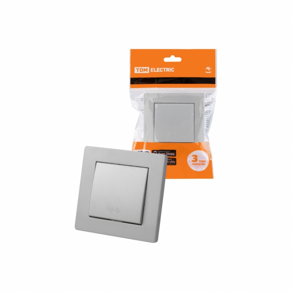 Выключатель 1 кл TDM Сенеж перекрестный 10А серебр металлик /30