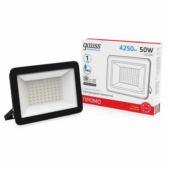 Прожектор Gauss Elementary 50W 4250lm 6500К IP65 PROMO G2 черный