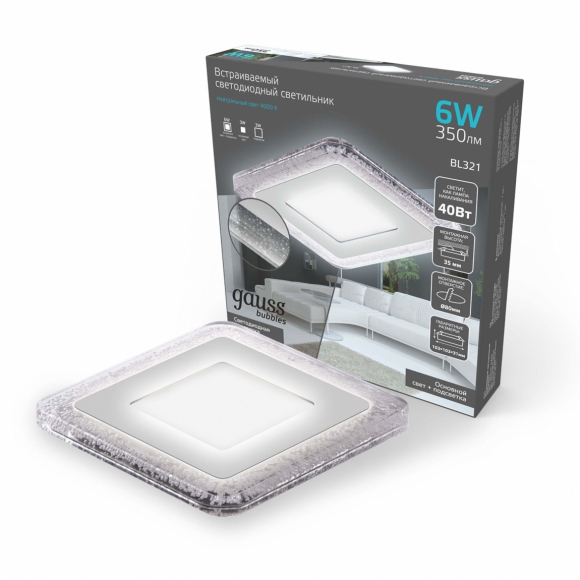 Светильник Gauss Bubbles BL321 Квадр 3+3W 4000K 104x104мм
