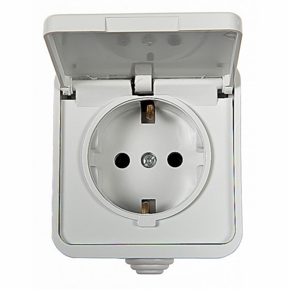 Розетка IN HOME AQUA одинарная с/з белая с крышкой полугермет 3112 /19