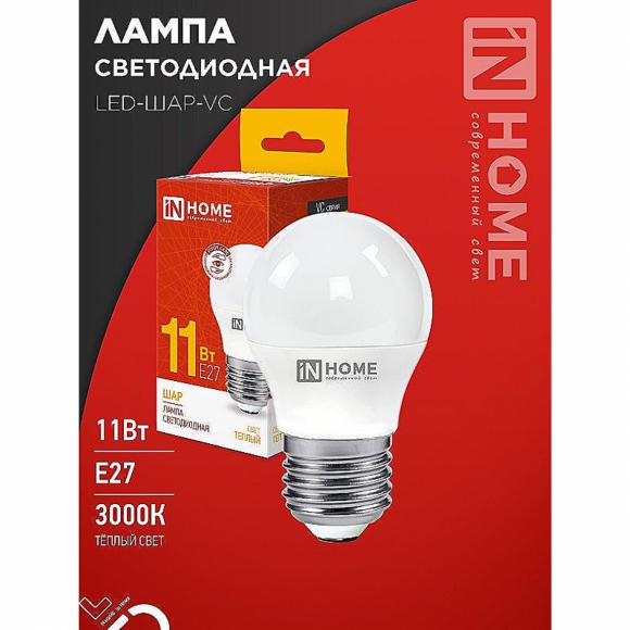 Лампа светодиод IN HOME LED-Шар-VC 11W 230V Е27 3000К 1050Лм /100
