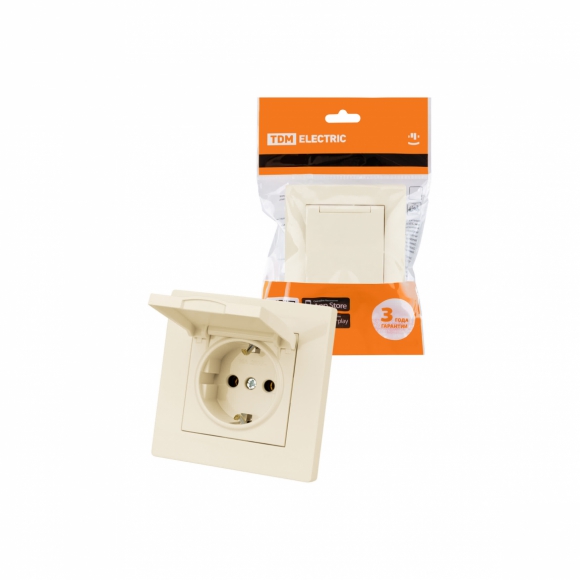 Розетка TDM Сенеж 2П+З 16А 250В IP44 с защ шторками с крышкой слоновая кость /30