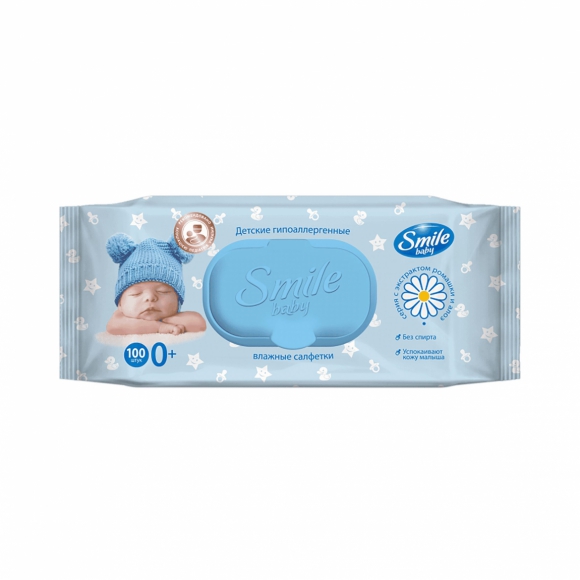 Салфетки влажные Smile Baby Алоэ/ромашка с клапаном 100шт /9