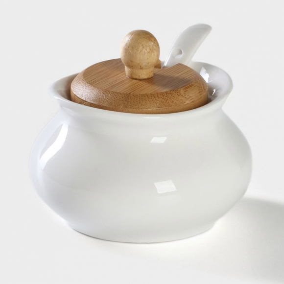 Саxарница с ложкой на дерев подставке Эстет 200мл 10x10x10см 4177779/48