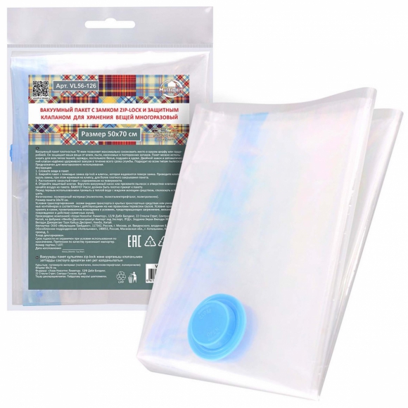 Пакет вакуумный с замком защ клапаном д/xранения вещей 50x70см /12