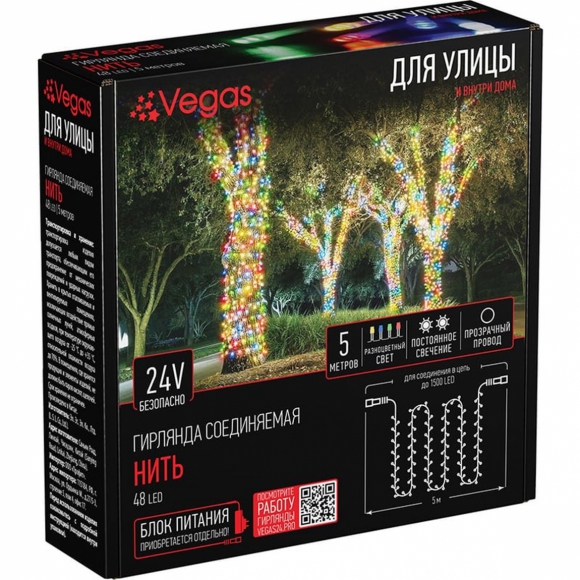 Электрогирлянда-конструктор VEGAS LED Нить прозр провод 48 разноцв ламп 5м 55087 /4