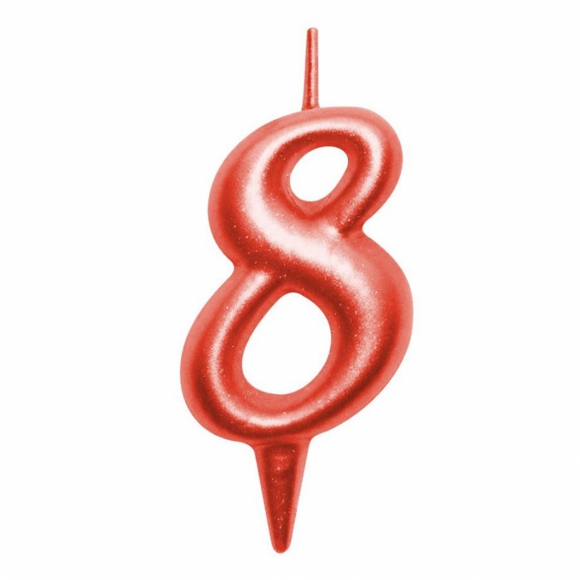 Свеча д/торта Овал цифра 8 красный 8x4x1.2см