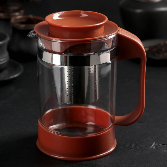 Чайник заварочный из пластика/стекла ситечко из нерж стали 1500мл AX503-1500