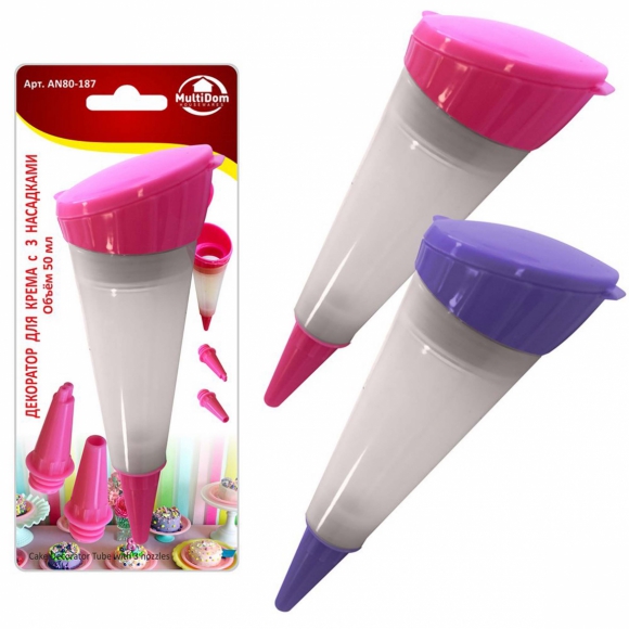 Декоратор д/крема 3 насадки 2цв 50мл /6