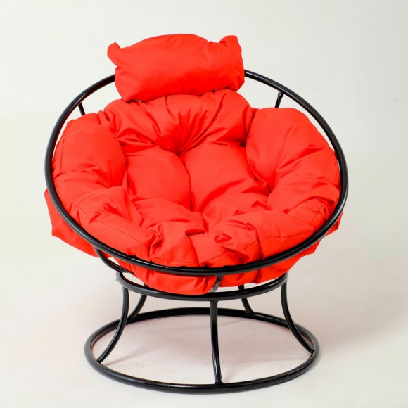 Кресло Папасан мини ротанг красная подушка черный каркас 81х68х77см 7000452
