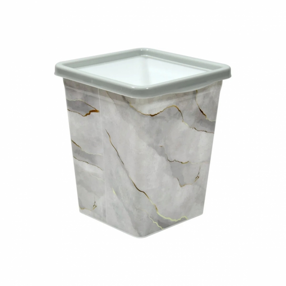 Ведро д/мусора с фиксатором квадрат с декором белый мрамор 940856